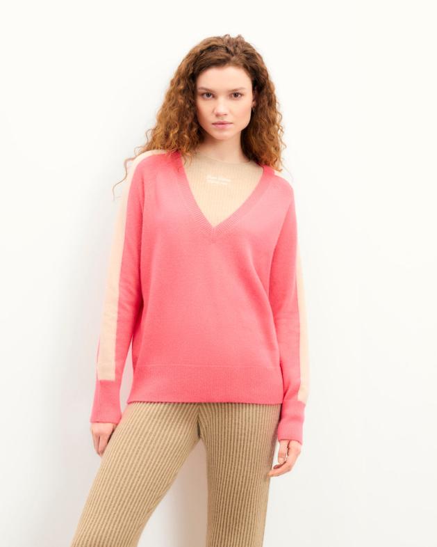 From Future Oversized V-hals sweater med striber og lyse ærmer Sunset Pink | Dame Cashmere V-hals sweatere