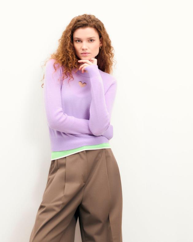 From Future Crewneck-trøje med åbent hjertemønster i fantasylilla | Dame Cashmere-trøjer med rund hals
