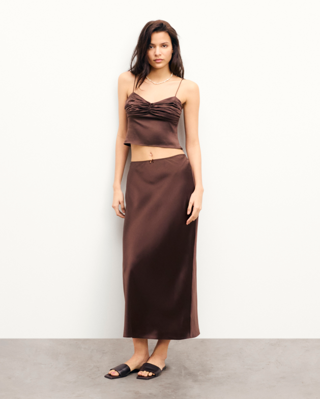- Falda larga de satén de seda para mujer
