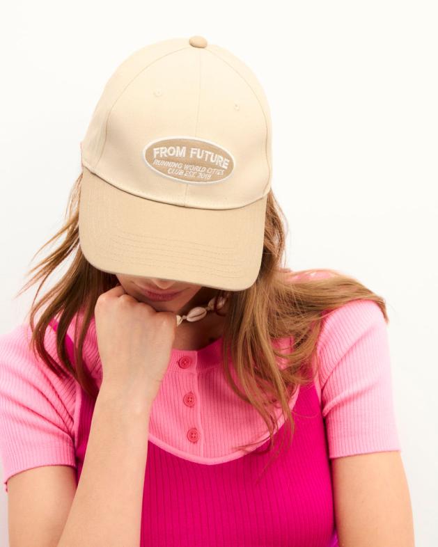A touch of vintage with soft hues. This cotton cap is adorned with an embroidered "From Future" badge and a contrasting curved brim.