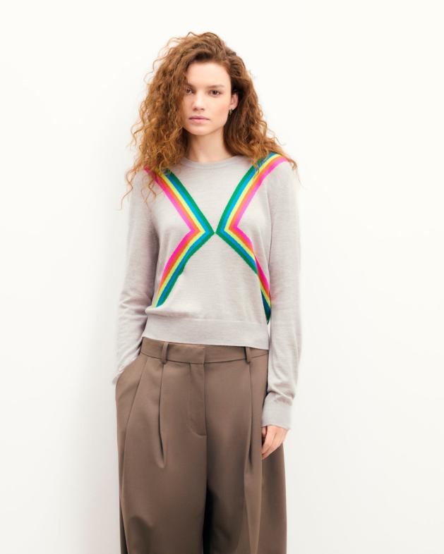 Suéter gola redonda From Future cinza mescla claro | Tricô feminino de verão