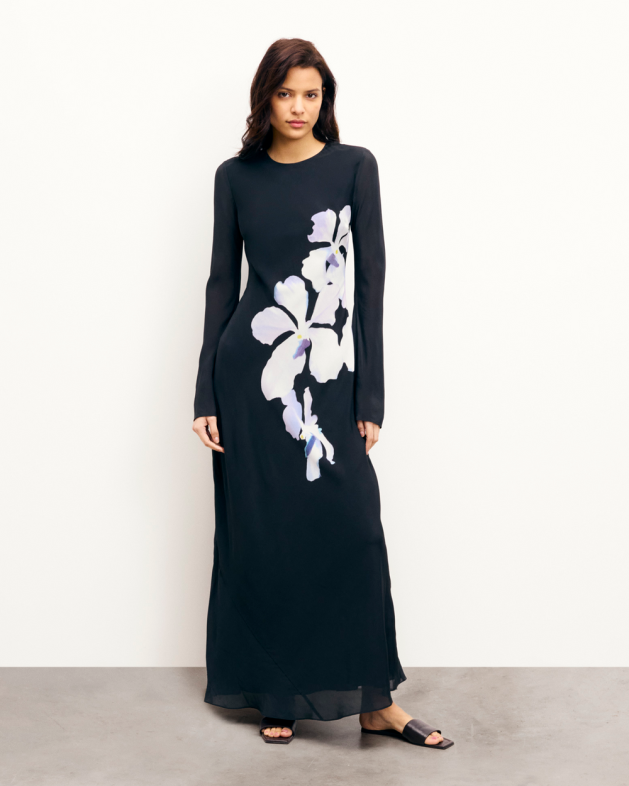 Rochie lungă cu mânecă lungă de la Future Marlow, Big Black Orchi | Rochii de damă
