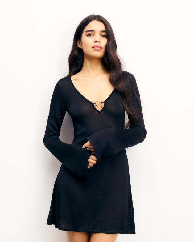 Rochie cu mânecă lungă From Future, cu bijuterii în formă de inimă, neagră | Rochii de damă