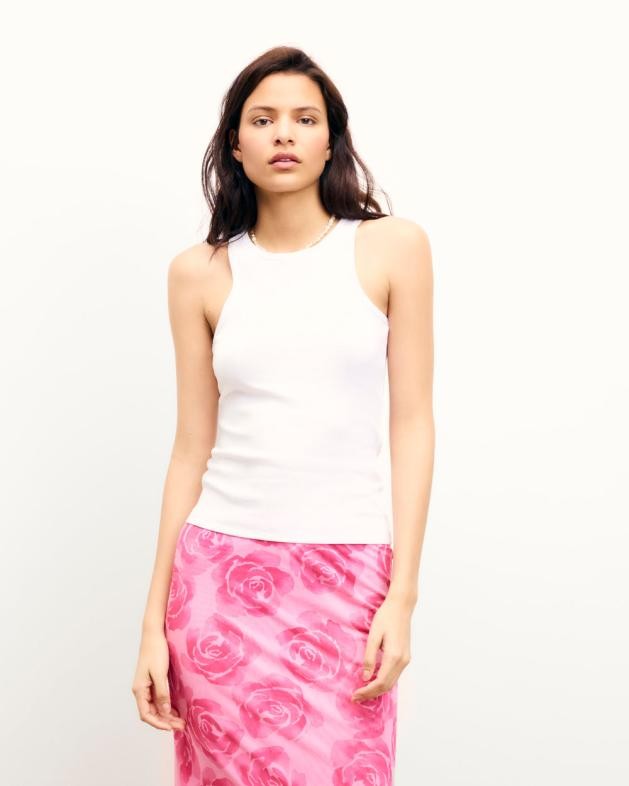 Ett måste i garderoben. Detta linne har rund halsringning, breda axelband och amerikanska ärmhål, vilket gör det perfekt att bära i lager eller solo.