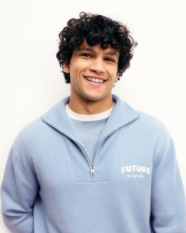 Pánsky sveter so štvrťzipsom od Future Future, sivo-modrý |
