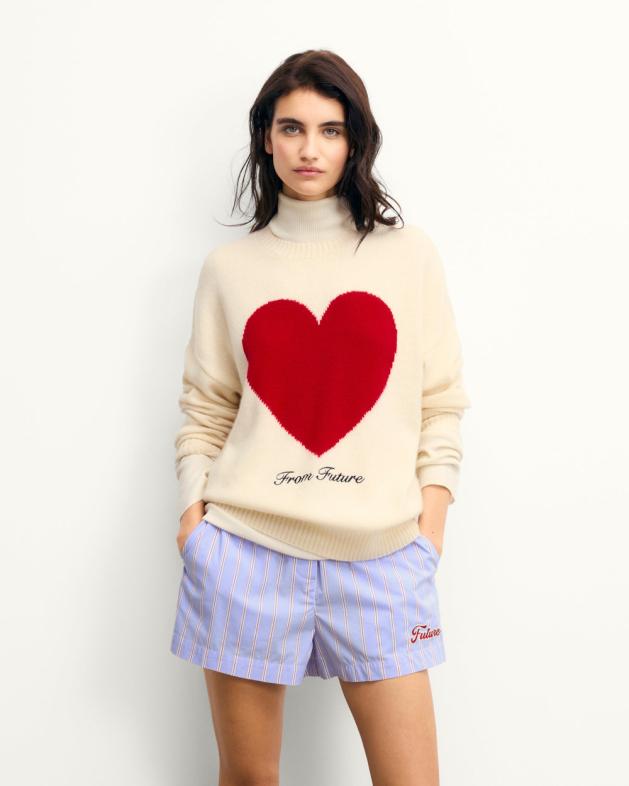 Join the Club with this long, oversized sweater. Crafted from 4-ply cashmere, this piece is adorned with a Future's signature heart. Featuring a crew neck and long sleeves, it pairs effortlesly with wide-leg pants or a silky skirt.